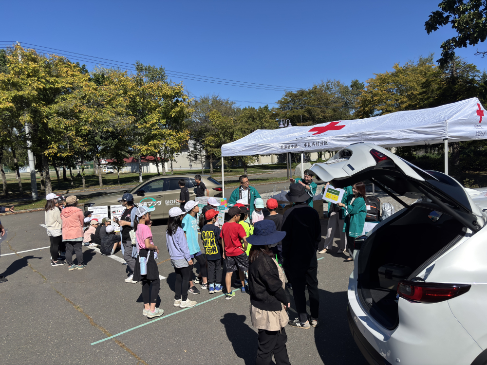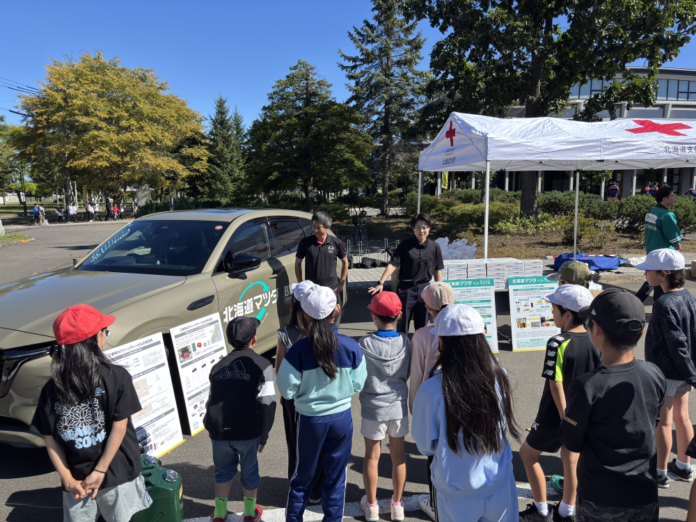 今年は 北海道マラソン先導車を 見て触って 頂きながら