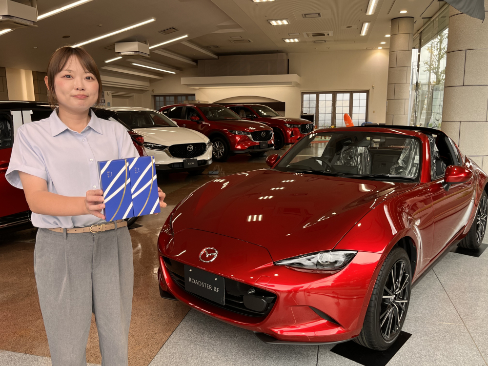 本日入ってきた展示車のロードスターと一緒に写ってもらいました!