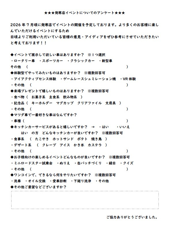 発寒店イベントについてご意見・アイデア募集中です(*´ω`*)