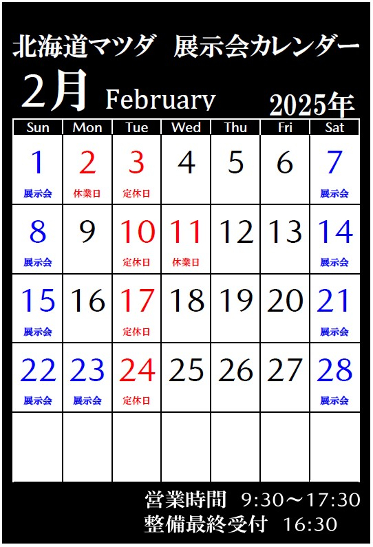 2月営業日のお知らせ