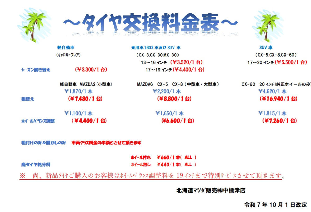 今後も、タイヤ交換のご予約も増えるかと思いますので早めのご予約をお願いいたします(*^^)v