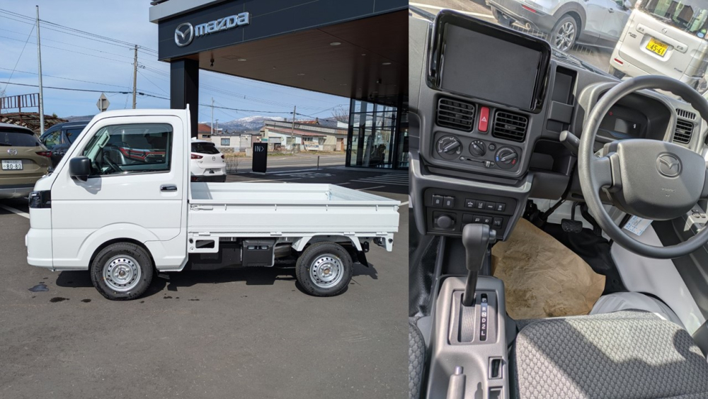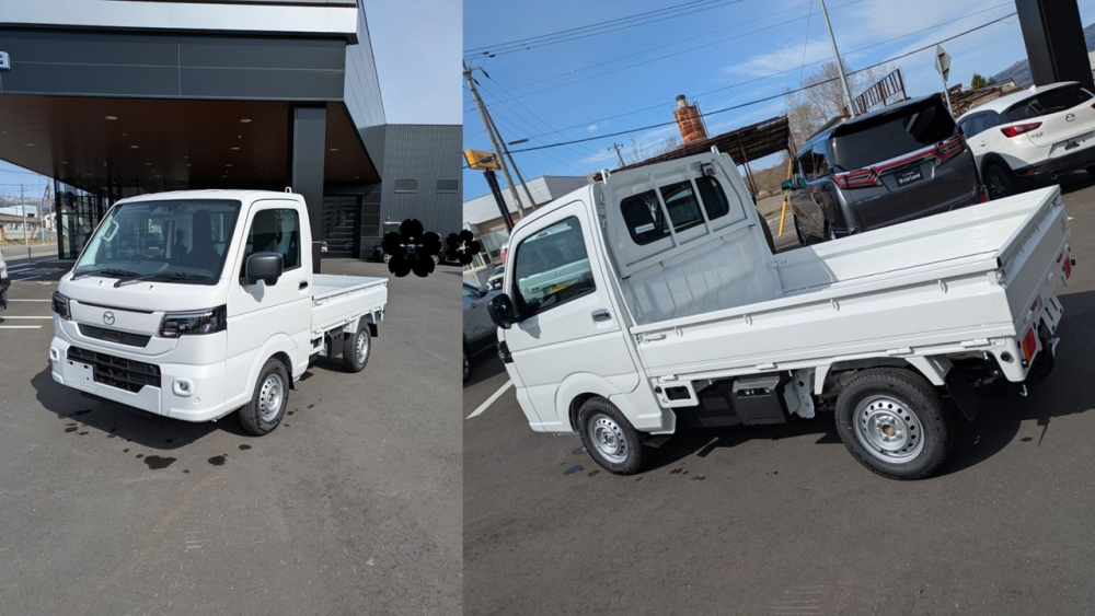 ちなみに軽トラの後ろに小さく写っている車たちは当店の中古車ですー