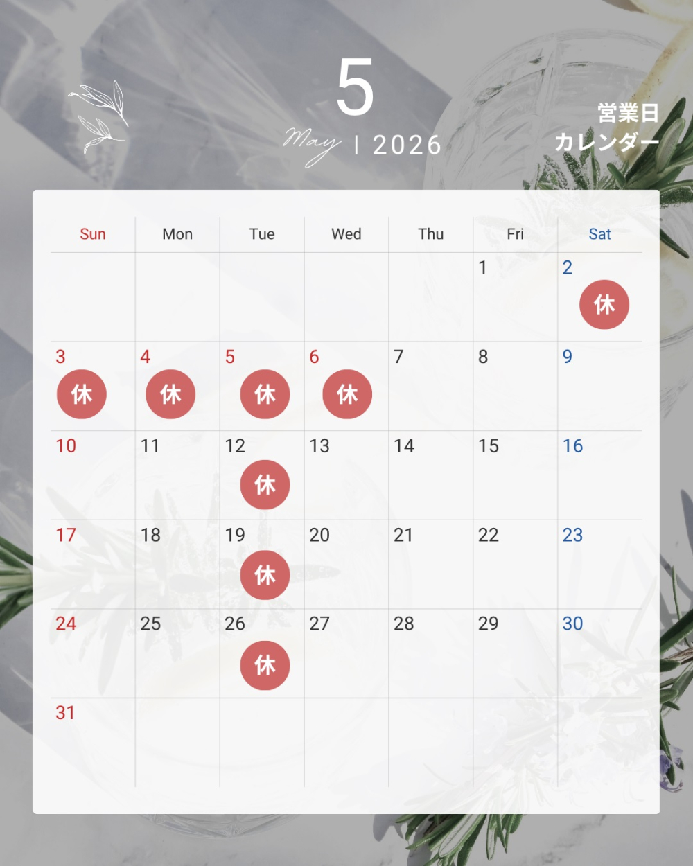 4月29日(水)~5月1日(月)は通常営業いたします。