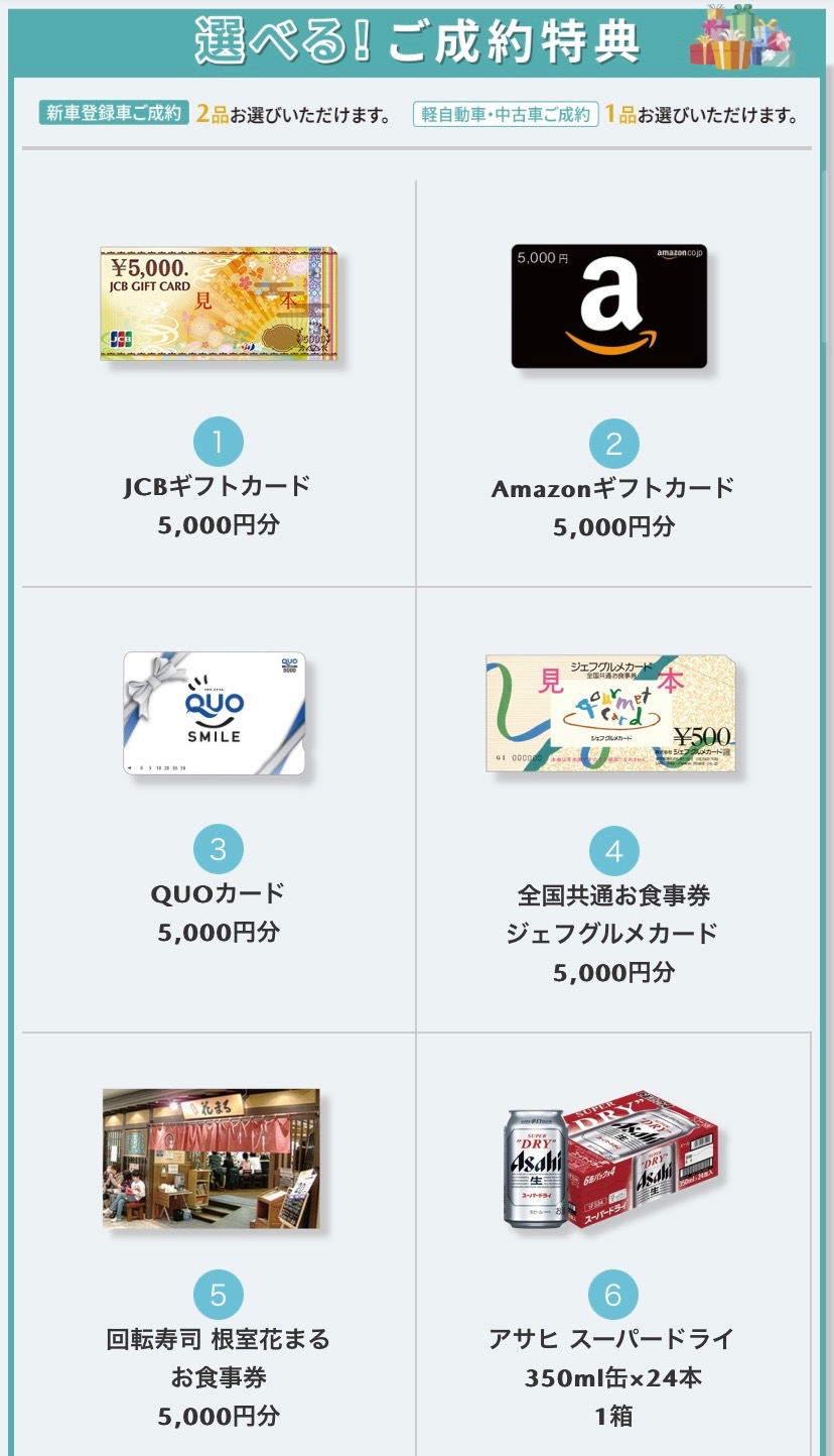 軽自動車・中古車ご成約→1品お選びいただけます。