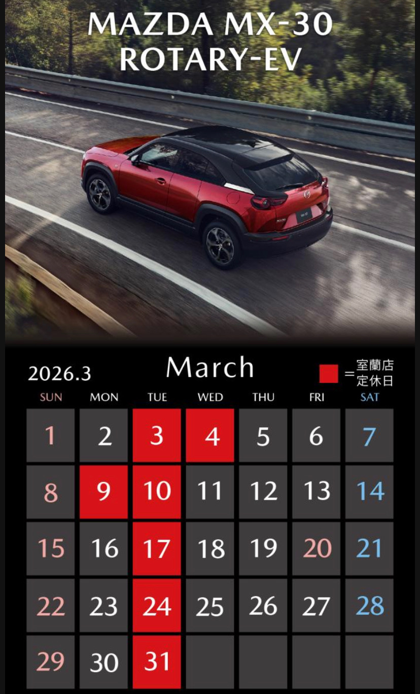 室蘭店の3月の営業日のお知らせです。