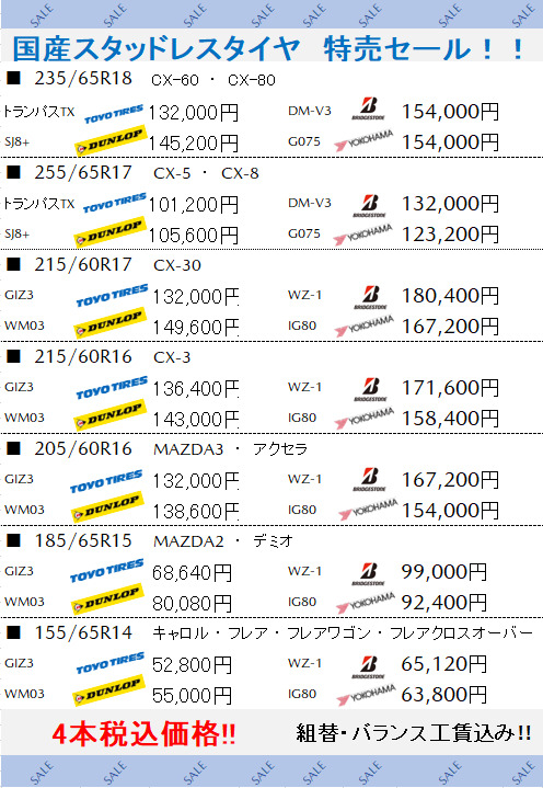 ★今回でタイヤ交換空き状況のご案内は終了致します!!