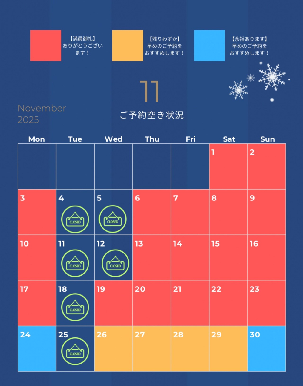 ◉◉タイヤ交換 空き状況のご案内◉◉