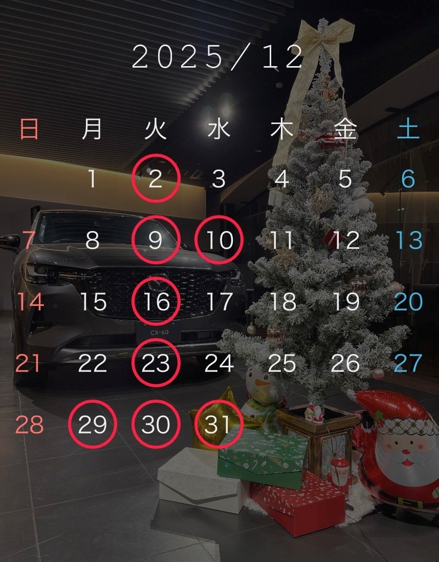 ⁂☆12月定休日&年末年始休業日のお知らせ☆⁂