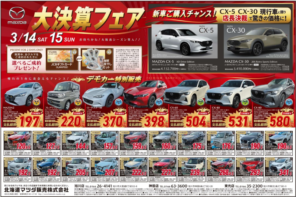 旭川店の展示車のご案内です。