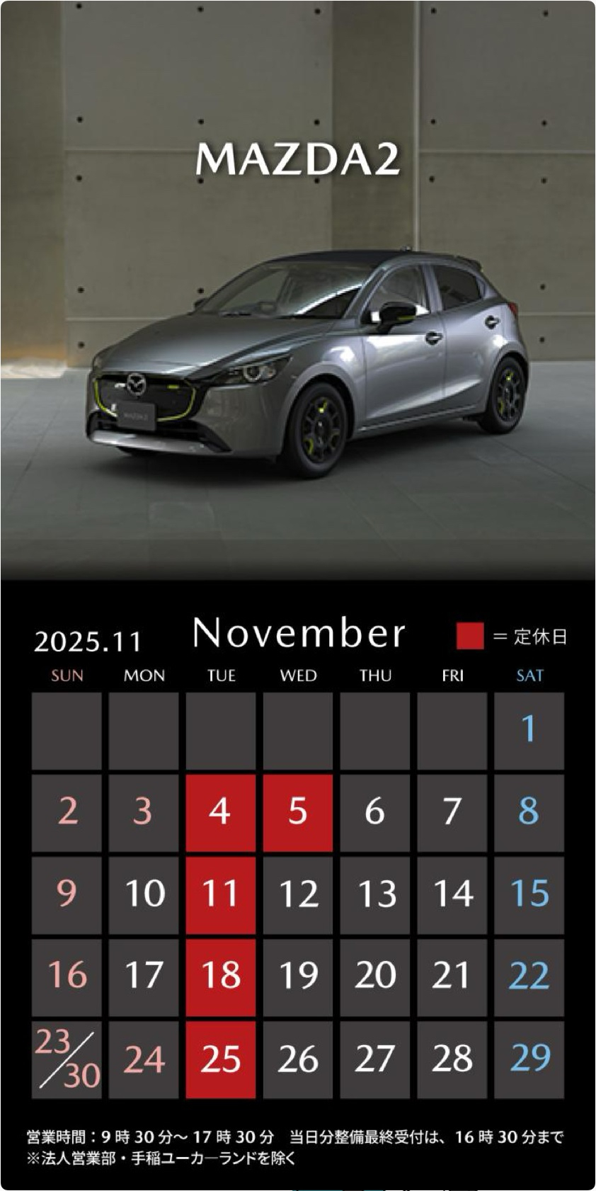 さて、今月の休業日のお知らせです。