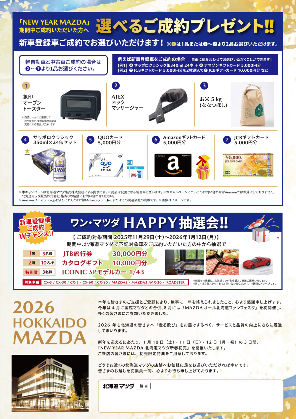来年も引続き、カーライフサポートのお役に立てるように、一層努力してまいりますので、今後ともよろしくお願いします。