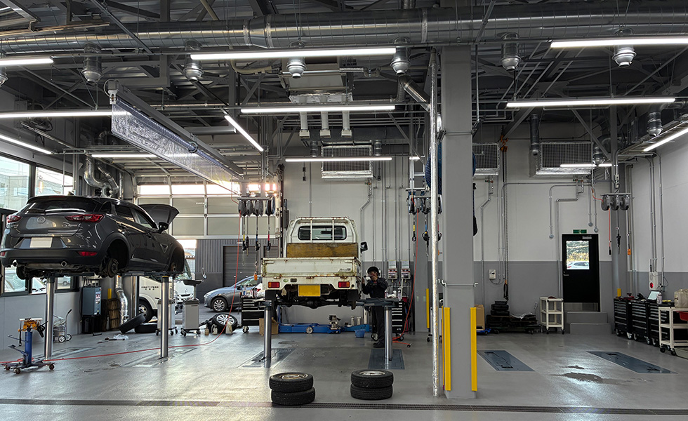 「そんな環境だからこそ、安心してクルマを使える整備やサポートを」と考え、この新しい店舗をつくりました。