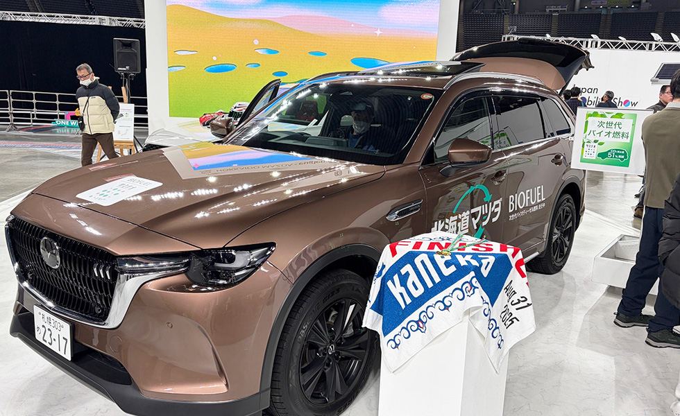 北海道マツダが所有する、同燃料を採用した2台の特別な車両を展示。